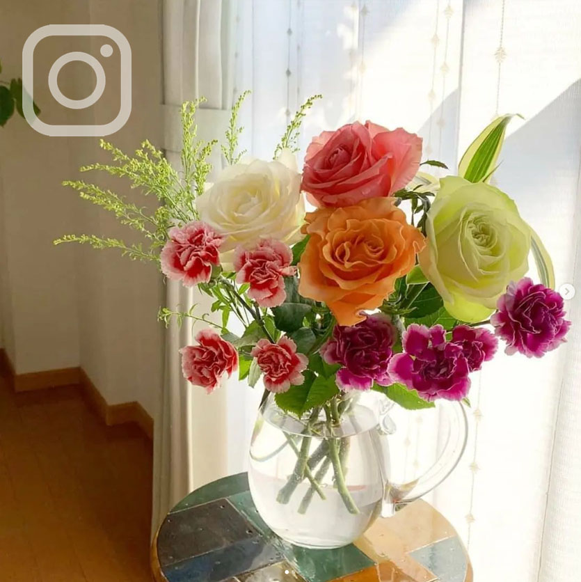 花瓶にまとまるように短く活けると、テーブルフラワーとして食卓を華やかに彩ります。